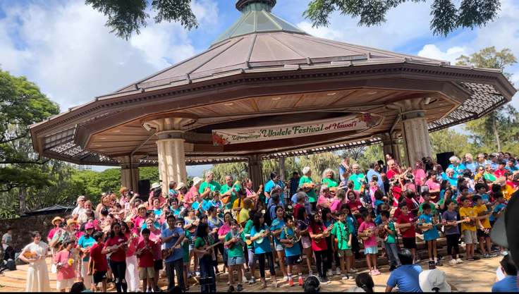 また翌日にはホノルルマラソンでも使われるカピオラニ公園で行われたインターナショナルウクレレフェスティバルにも出演いたしました。