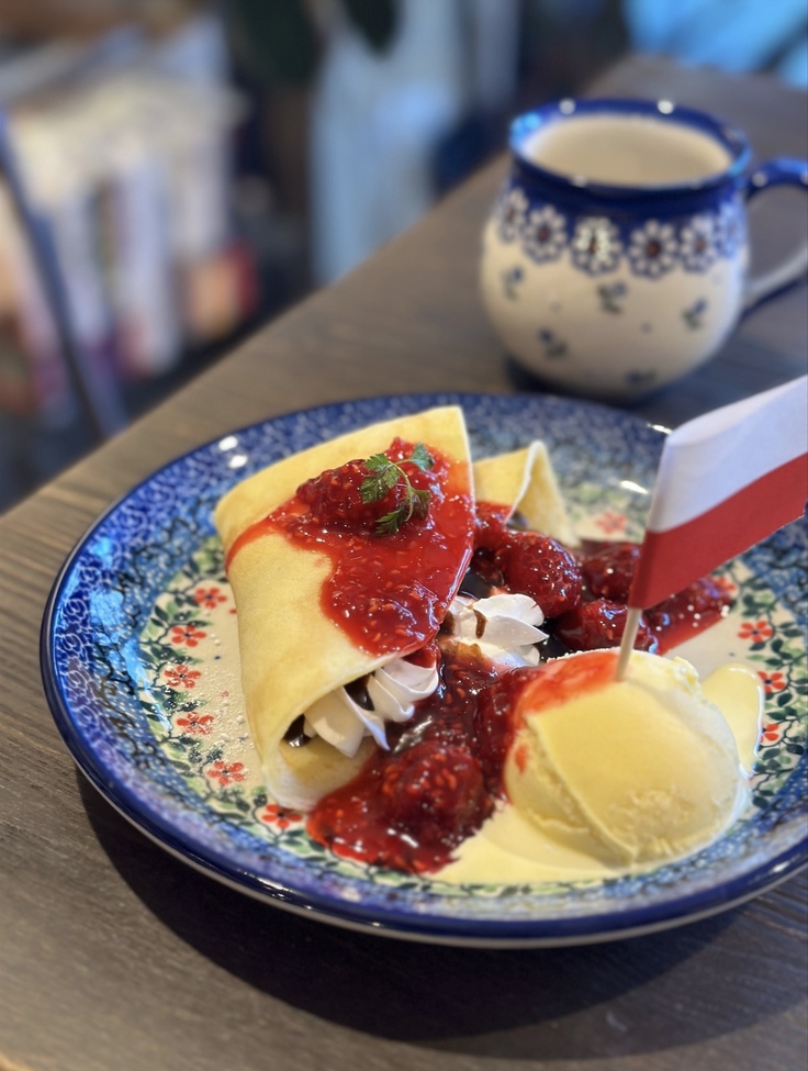 カフェとしても、高い評価をいただいております。グーグルの口コミで14件4.3(令和6年4月現在)。特に自家製のプリンと、東京では恐らく当店だけでしか提供をしていないポーランドの伝統的スィーツ「ナレシニキ」は、ご好評をいただいております。