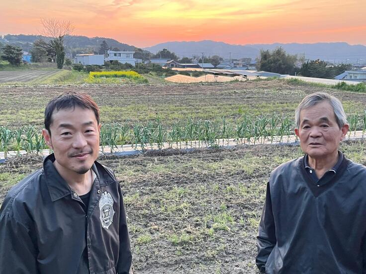 息子でありプロジェクトリーダーのアルベルトにペペロンチーノの愛媛栽培の夢を託す。