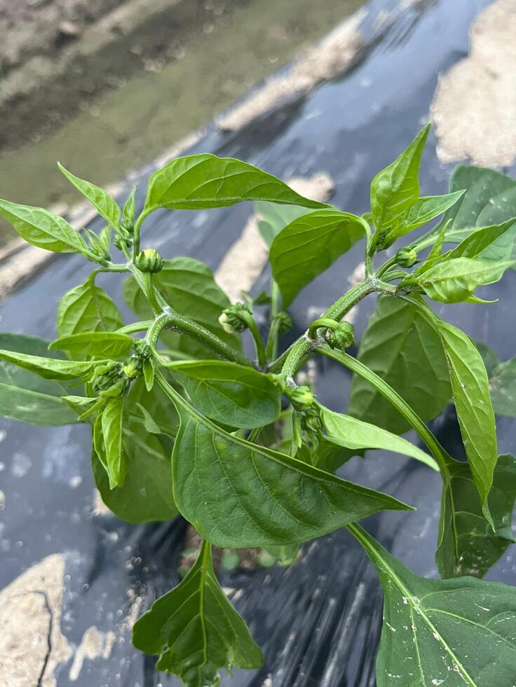 プランターで育てていたペペロンチーノの苗を、地面に移しました。