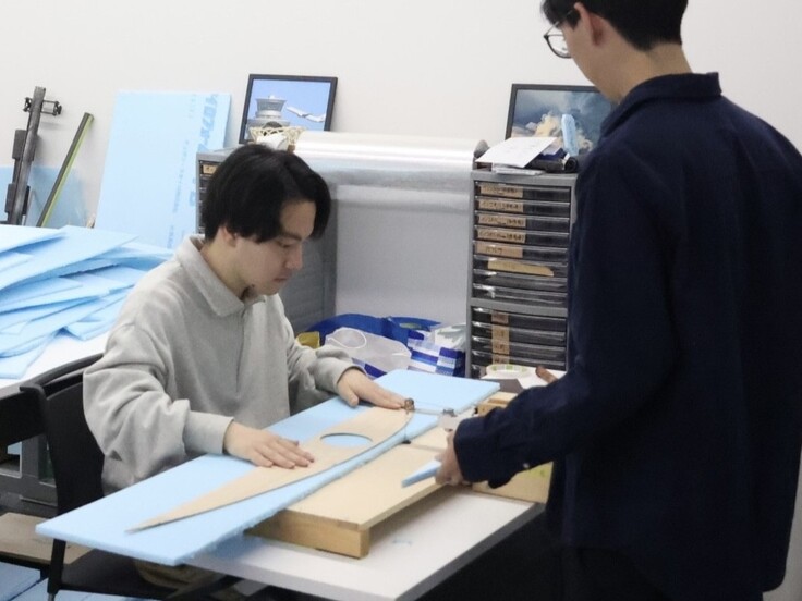 また同じように鳥人間コンテスト出場を目指している他のチームにお願いして、作業場の見学や電熱線カッターの作り方、滑空機の構造を教えてもらうことでたくさんの学びを得ることができました。