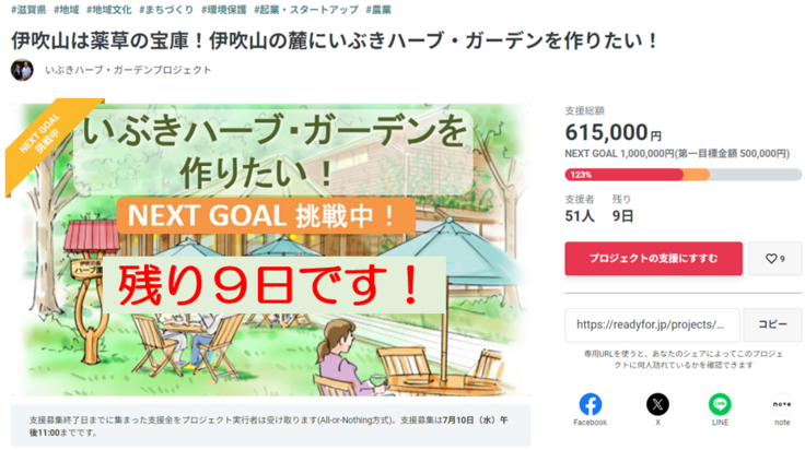 いぶきハーブ・ガーデンのクラウドファンディングページをご覧いただきありがとうございます!