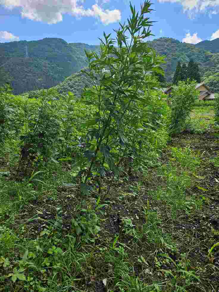 今日は、長雨で外に出られなかったオオヨモギが気になり、ほ場に行ってみたところ、やはり草だらけ、それよりもこんなに大きくなってます!