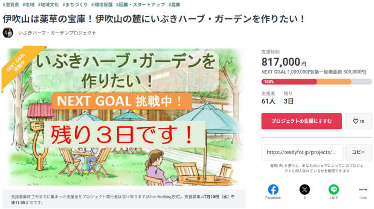 いぶきハーブ・ガーデンのクラウドファンディングページをご覧いただきありがとうございます!