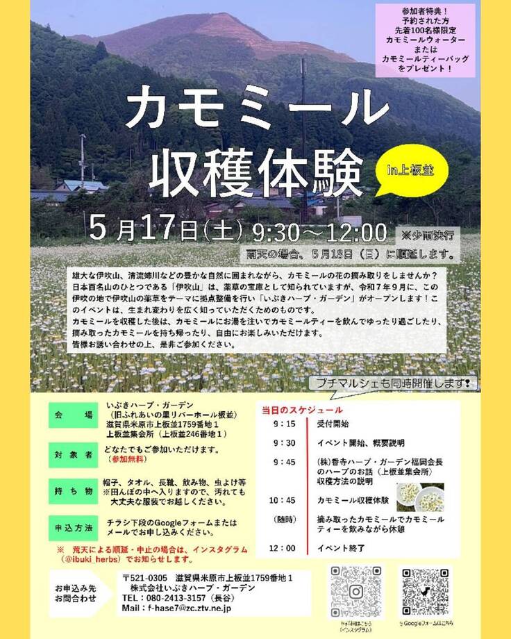 来週17日(土)には、カモミール収穫体験イベントを開催します!