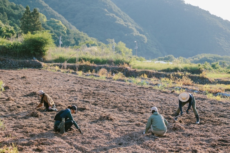 集落の方に重機で草木を除去してもらうとこから始まり、草刈り、耕運、草の根の除去など、手作業で開墾していきました。