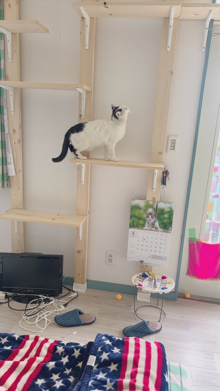 出来上がった部屋に今、猫達が入居しだしております。