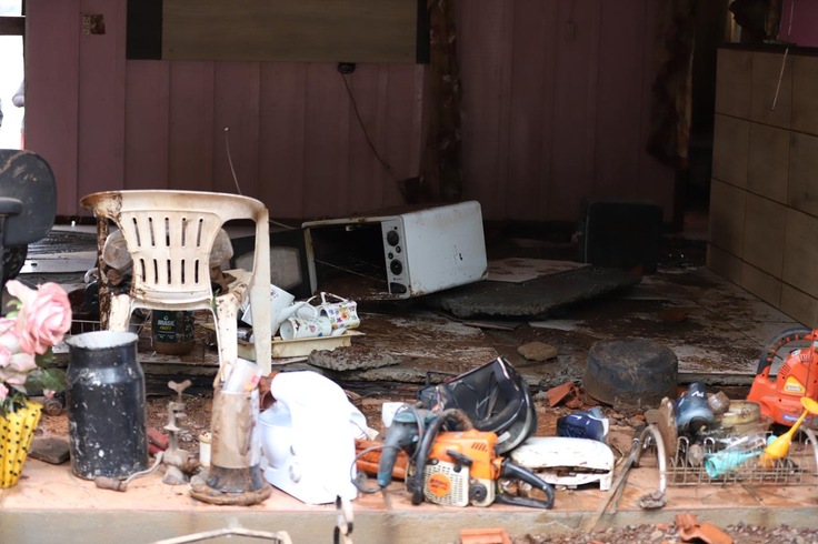 現地にいる方の話では、雨が降ったりやんだりで川の増水に油断出来ない状況が続いてるものの、街に流れ込んだ水は引いて瓦礫撤去などの復興作業が進んでいるとの事。