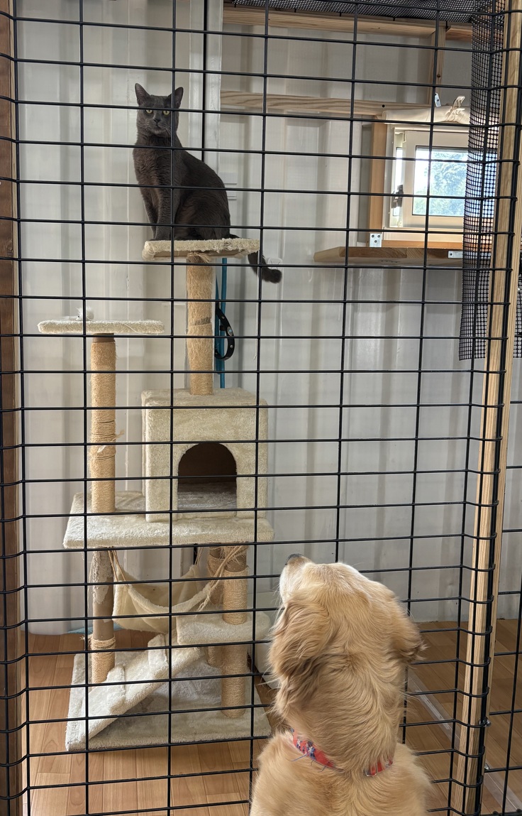 そこで思い立ち、全盲のラブラドールのジュン君のエリアを昼間だけcat roomに改装‼️
