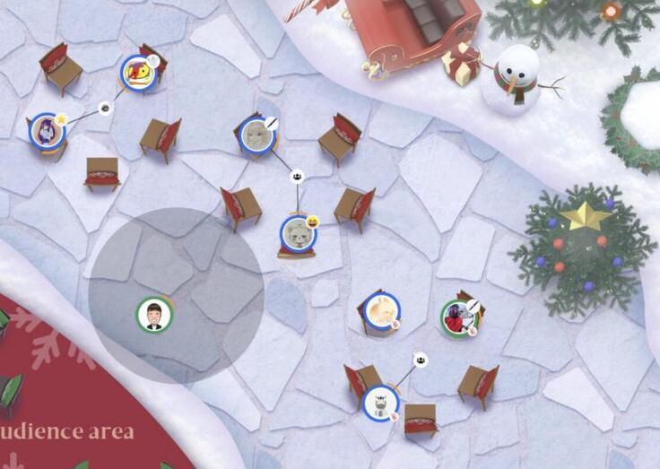 子どもたちが過ごす校舎は、バーチャルオフィス業界でトップシェアをもつoVice株式会社と協業連携し開発した校舎です。先生たちの雑談が自然と聞こえたり、仲良くなった友達から「肩ポン」されたり、人の温もりを感じることができる空間です。