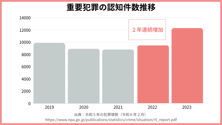 しかし、一昨年から、日本の犯罪率は増加しています。