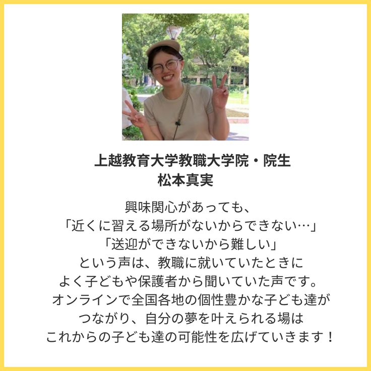生まれた土地や育つ環境に左右されず、どこにいても、人と繋がり、新しい挑戦ができる学びの環境。