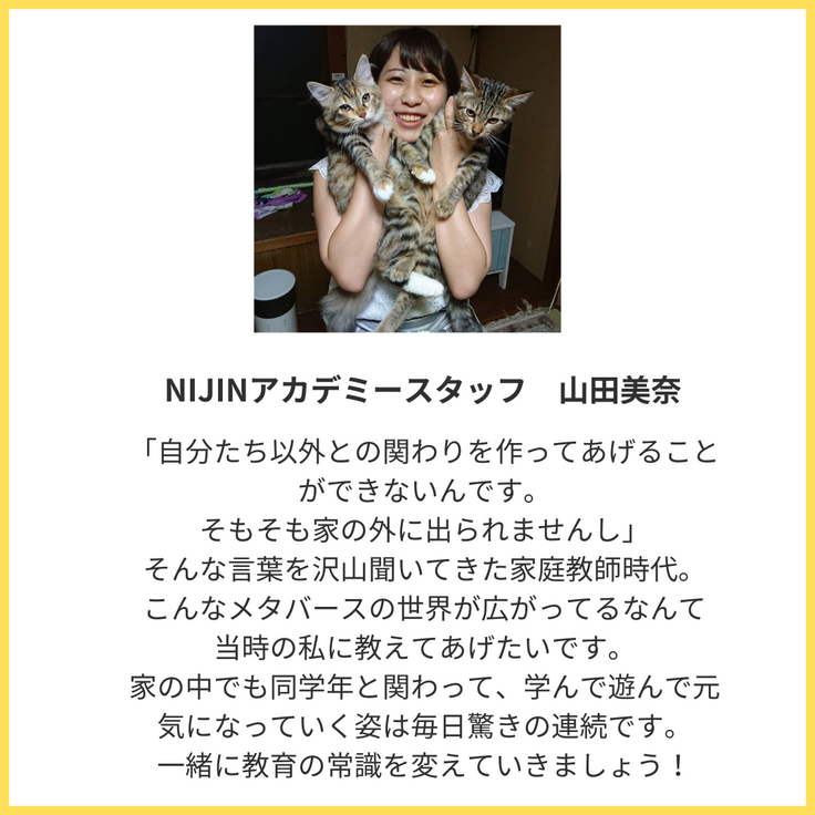 別事業のNIJINアカデミーでは、不登校の子どもたちとインターネット上にあるメタバース教室(仮想空間の教室)で学校生活を送っています。