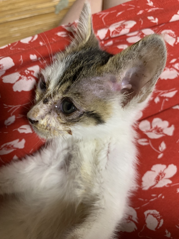 依頼者のおばあちゃんに捕まえられて私が初めて会った時目は猫風邪でほとんど見えてなかったよね。病院でも2、3日おくれてたら