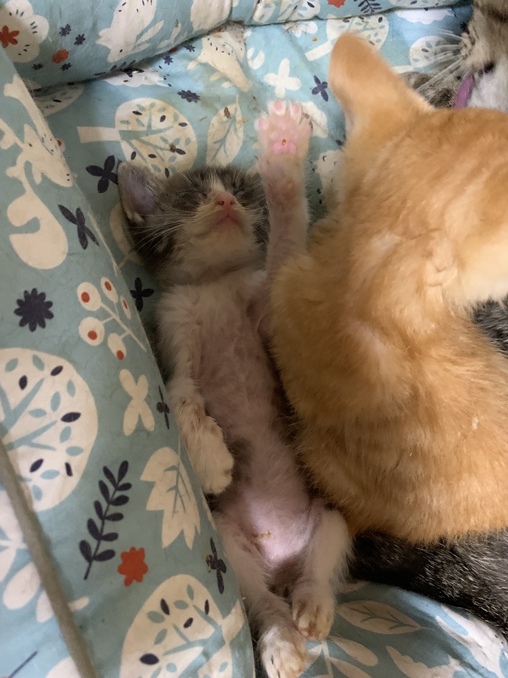 寝方がなんともハーイって手を上げてめちゃくちゃ可愛い😸どぉかこのまま何ごともなく大きく育ってくれますよおに😌