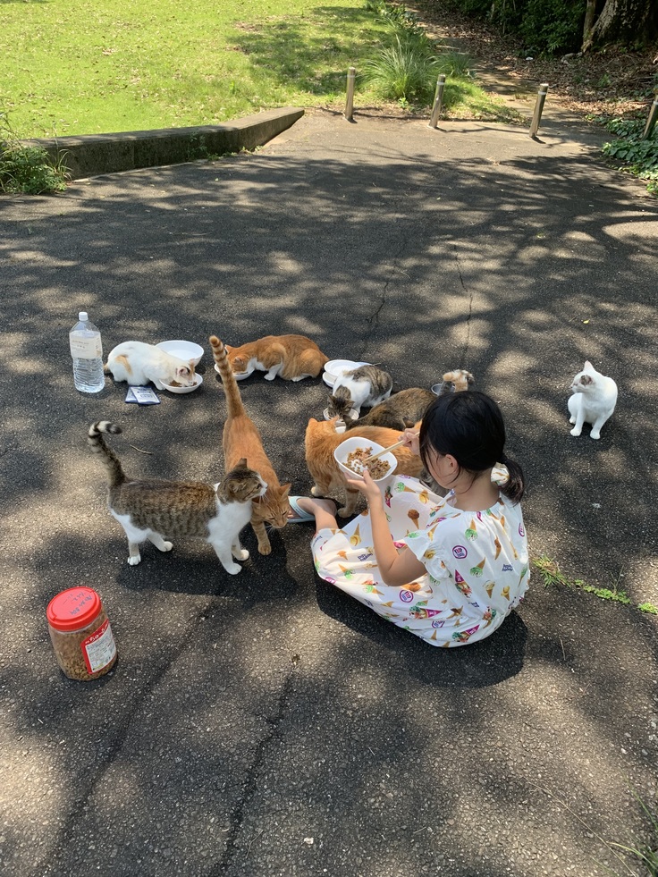 朝から娘と地域猫してる場所にご飯とお水を持っていきました✨