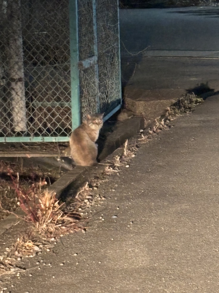 以前から食品工場周辺で、痩せ細った猫達が増え続けている相談があり、企業側の協力がないと不法侵入にもなりますので、協力願いをしましたが断られてしまい、敷地には入らず周辺に協力していただけるボランティアさん配置し、夕方から朝方まで保護活動を現在実施しています。