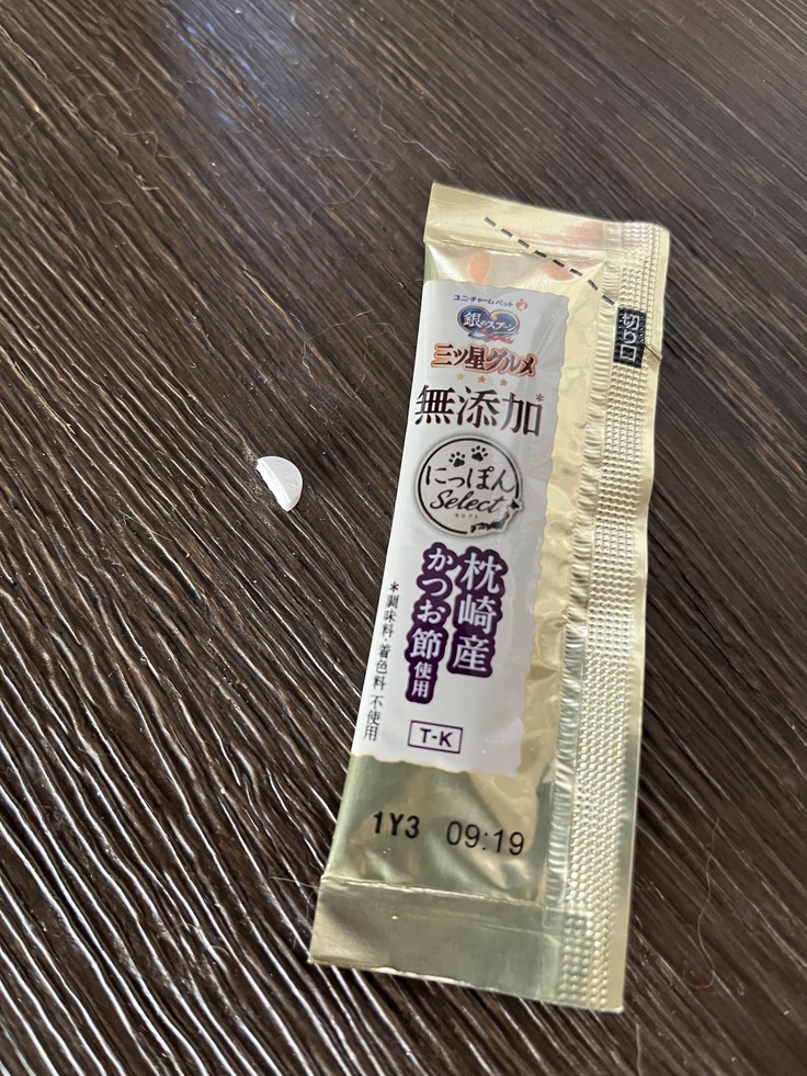 お薬は、チュールに混ぜるのではなく、このまま飲み込んで貰います。お薬あげるのも慣れてきました。