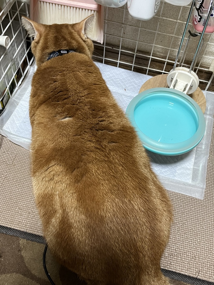 ちょっとだけ背中にハゲが出来ているのは、点滴の名残です。