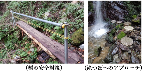 ・第二滝トラバース土留め丸太、第二の橋手すり整備
