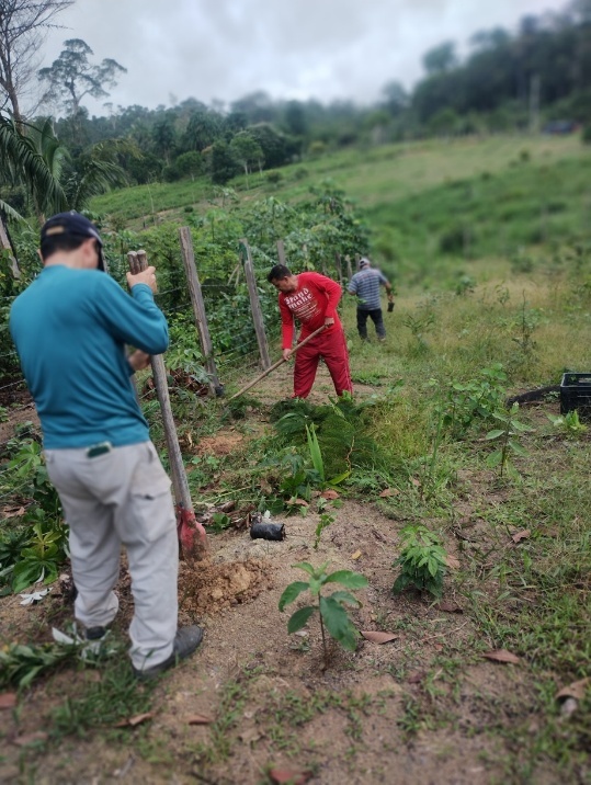 リオ・プレット・ダ・エバ市生産者の土地(裸地)への植え付け作業。2025年2月下旬
