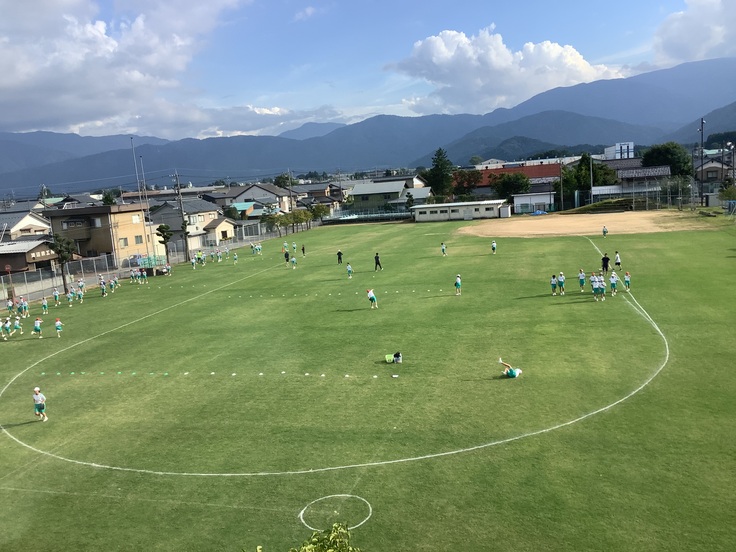 また、地域のスポーツ少年団も、ナイターで芝生の校庭を活用し、元気いっぱいに練習を行っています。