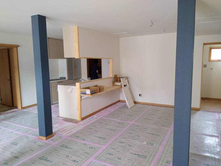 壁紙の白と柱の紺の色味が素敵な感じ。自画自賛です。