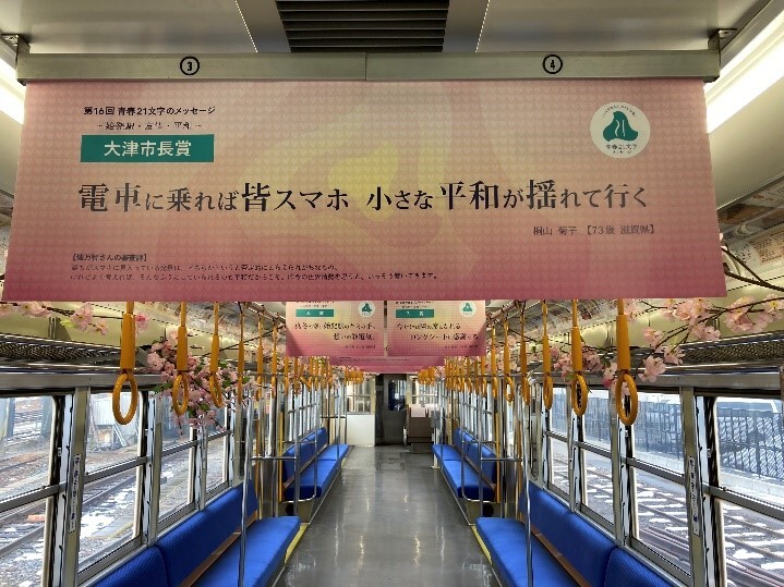 沿線には学校が多く、朝夕には制服姿の中高生であふれます。「石坂線って青春っぽい」。だれかれとなく出てきたそんな言葉から、「青春21文字のメッセージ」は生まれました。