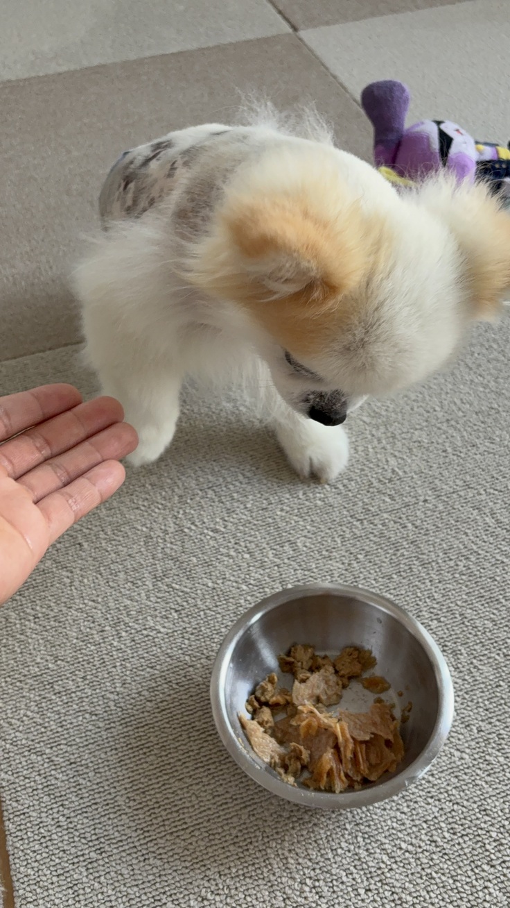 よっぽど気に入ったのか珍しくご飯を食べる前のお手をしないチーくん🤭