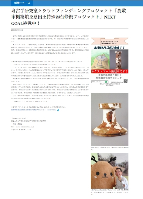 考古学研究室クラウドファンディングプロジェクト「倉敷市楯築墳丘墓出土特殊器台修復プロジェクト」NEXT GOAL挑戦中! - 国立大学法人 岡山大学 (okayama-u.ac.jp)
