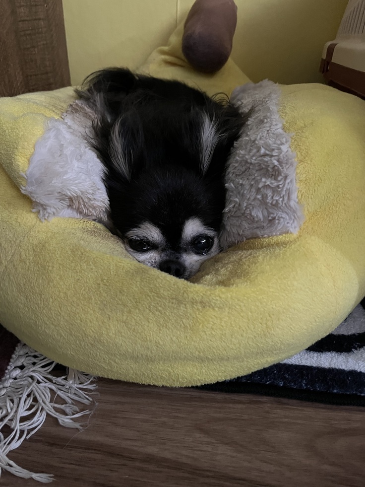 術後ここで寝始めたときは、「黒太がバナナで寝てる!」と家族で喜びました。