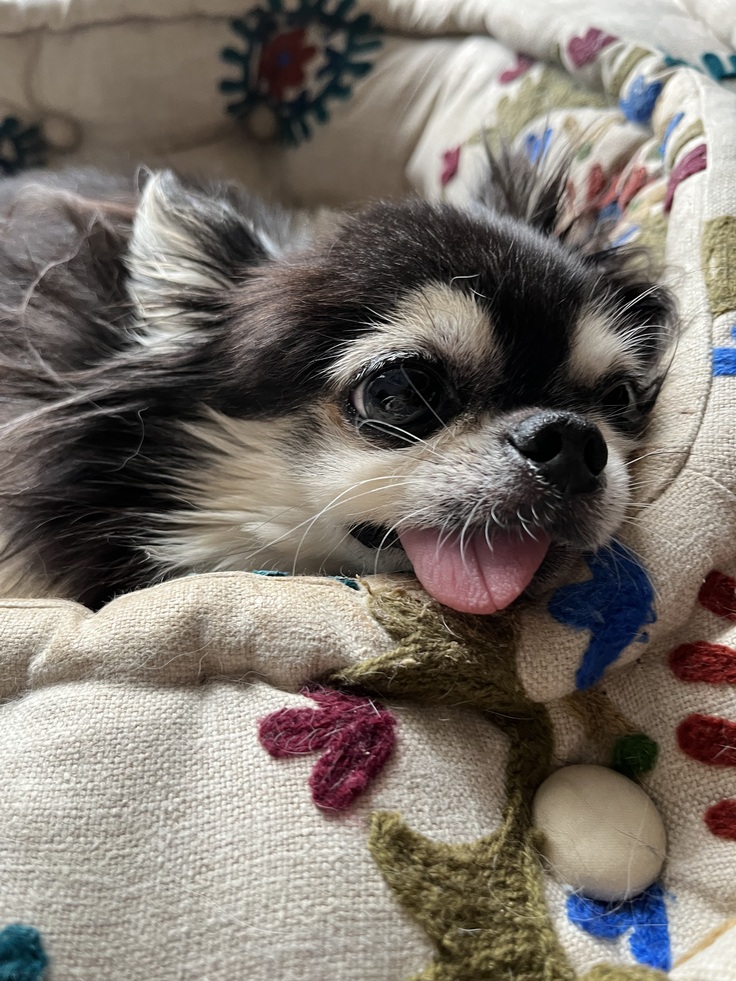 咳き込んで起きることもなくなった今は本当にリラックスして、ずっと気持ちよく寝てるおじいちゃん犬です。