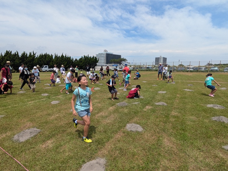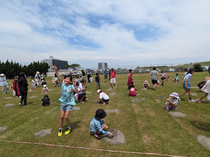 宝探しゲームでは、子供達が元気に楽しく走り回っていました。