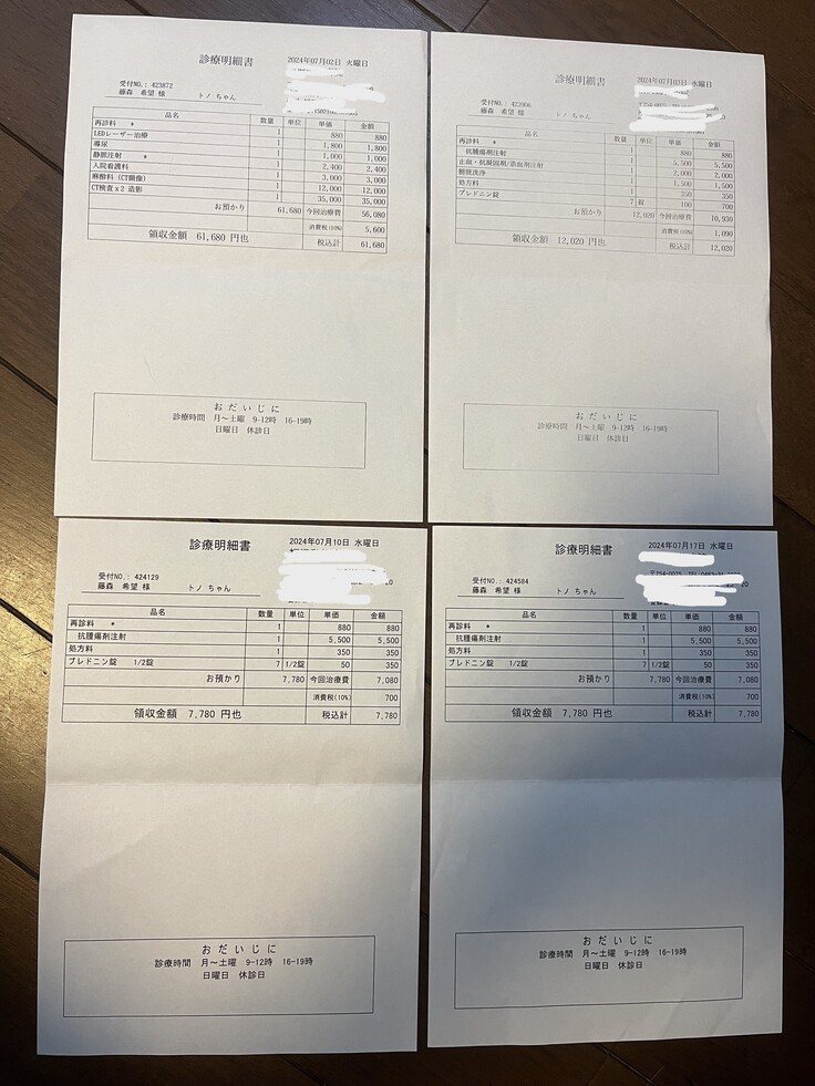 ▶︎ 4. 掲載している資料についてページ上に掲載している診断書や診療明細書などの資料は全て動物病院から掲載の許諾を得ております。