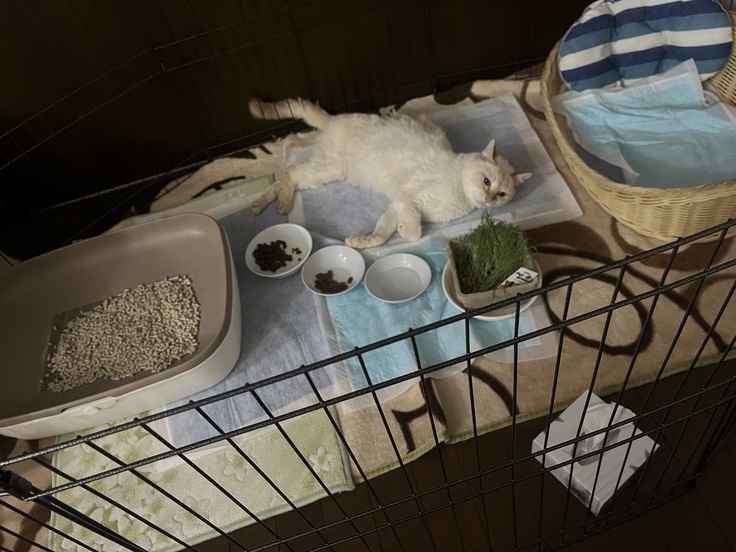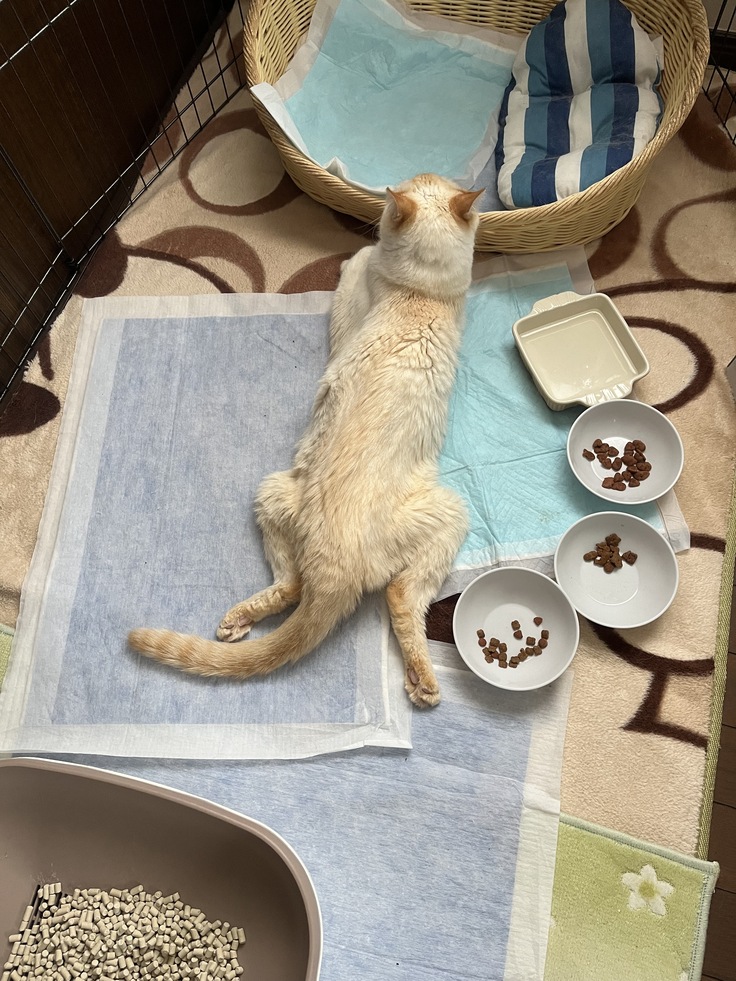 まだ足腰はふらふらしていたので、抱いてトイレに連れて行くと、自力で排尿ができるようになりました。