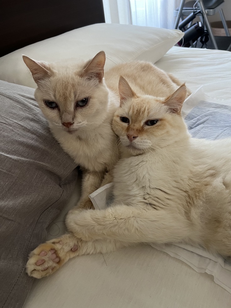 神奈川県で保護猫2匹と生活しています。 殿と姫です。 ふわふわの白猫です。