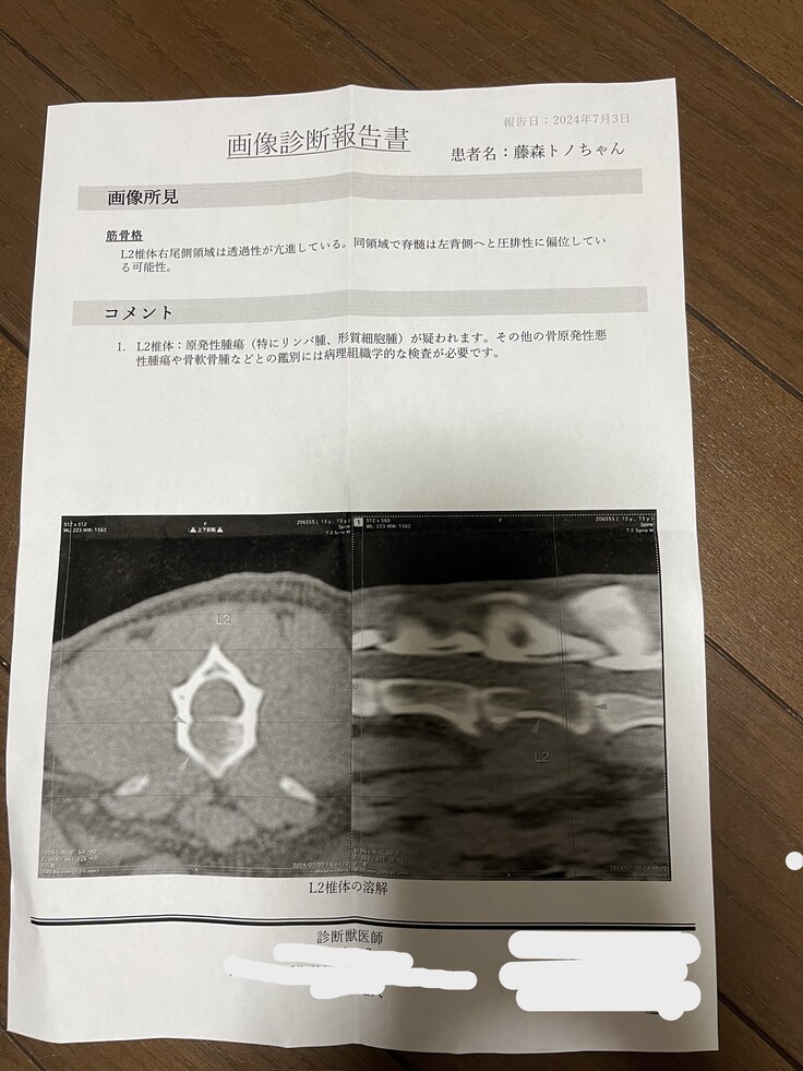 当初は、猫ではそこそこ珍しい椎間板ヘルニアかもと診断されました。
