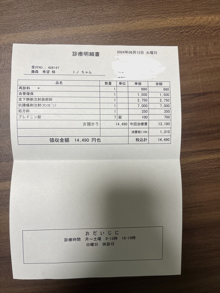 今年2024年6月の頭に、突然腰が抜けたので、慌てて病院を受診しました。