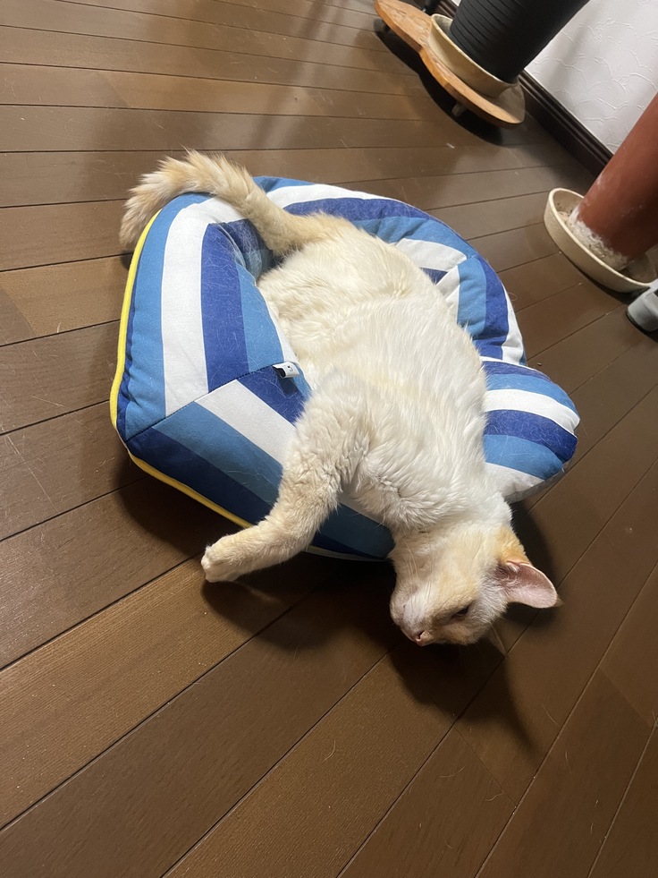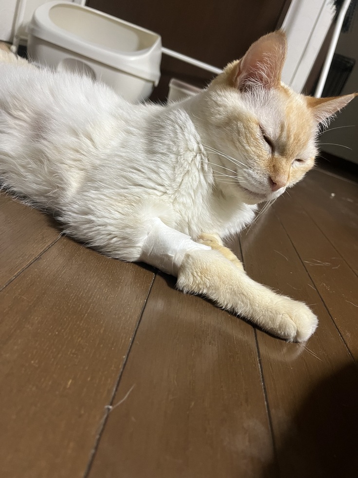 今現在は抱いて冷房が効いた部屋に連れてきましたが、