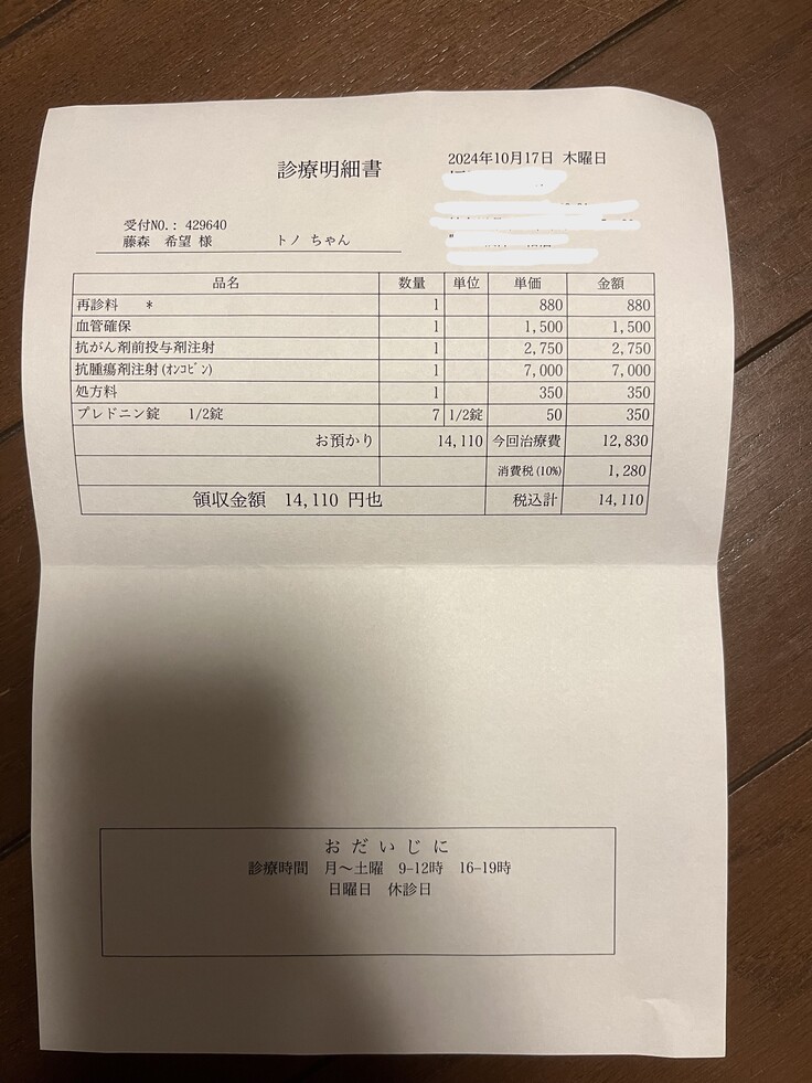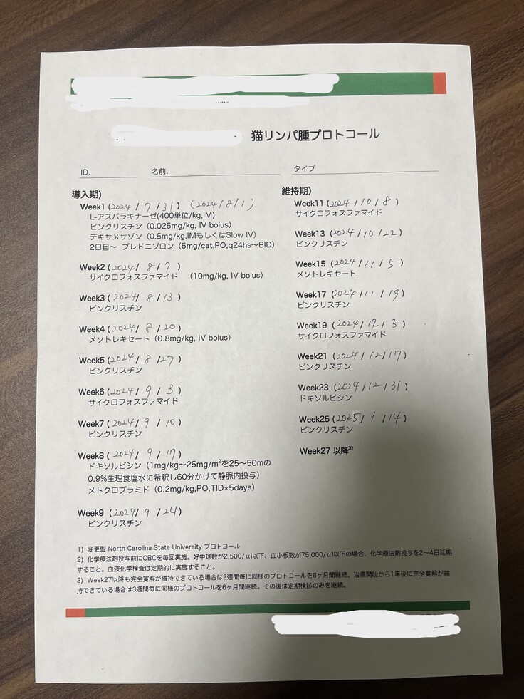 当初、病院より提示していただいたプロトコール(治療計画)より、少しゆっくりの治療を施すことが出来ているようです。