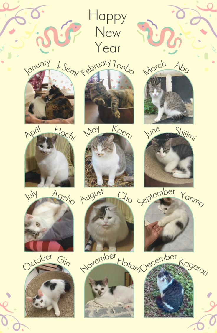 あけましておめでとうございます。昨年は温かいご支援をいただき、ありがとうございます。みなさまのおかげで、関わった猫たちの多くが温かいお正月を過ごしています。トライアル中ではあるものの子猫6頭譲渡しました。