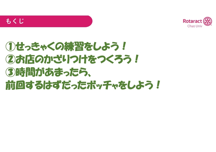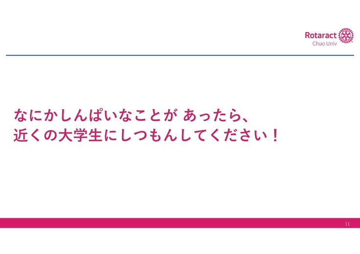 中央大学ローターアクトクラブ社会奉仕委員会です。(執筆者 2年古賀)