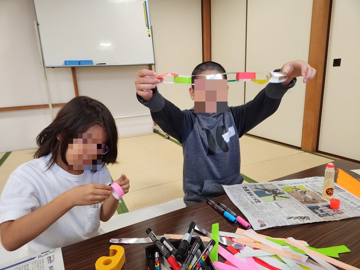 装飾は子どもたちが思い思いのものを折り紙で作ってくれました。