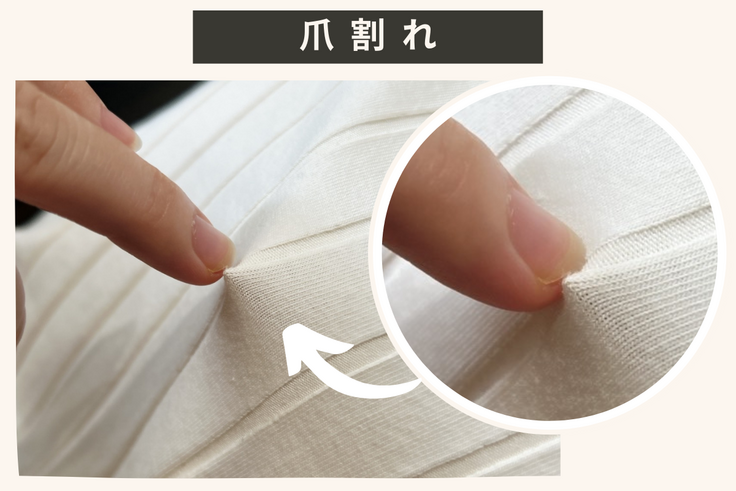 爪割れを放置するとストッキングやニットに引っかかったり、さらなる衝撃が加わって症状を悪化させてしまうことも。