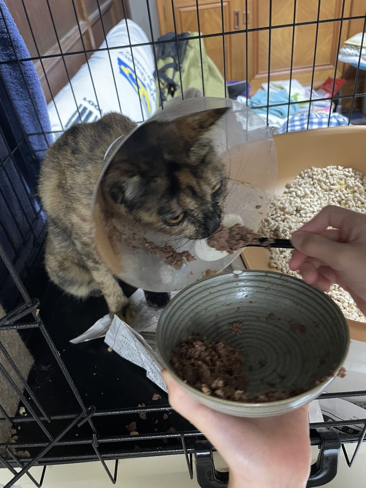 一緒にご飯をあげたり、拭いてあげたりしました!