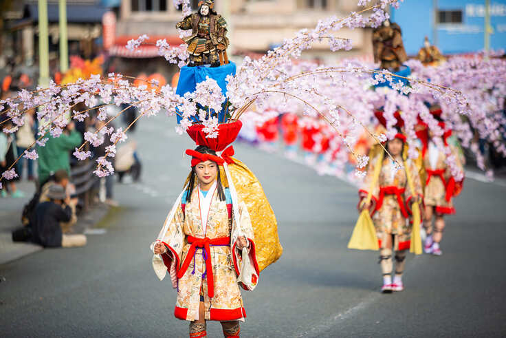 「お通り」とは、東城町に400年以上続く伝統文化行事で、関ヶ原の戦いの後、広島藩主に任ぜられた福島正則が、三家老のひとり長尾隼人正一勝を東城一万石の城主として任命。慶長6年、五品嶽城主となった長尾隼人正一勝が関ヶ原戦勝を祝して、祭礼御興行列に武者行列を加えたのが始まりとされます。