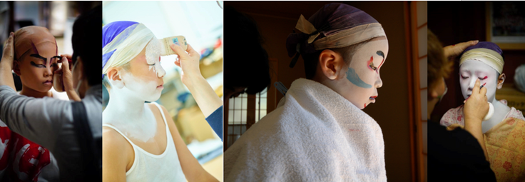 子供の芸と侮るなかれ、本当の歌舞伎と同じような化粧と衣装や鬘を付け、本格的な振り付けによる子供たちの演技には驚かされます。