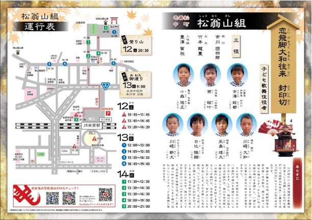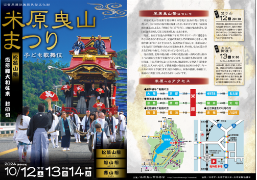 令和六年の「米原曳山まつり」は10月12日(土)宵宮、13日(日)本楽、14日(月・祝)後宴に開催されます。