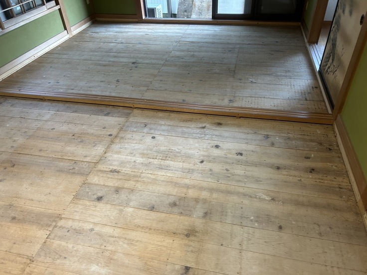現在、工事が進み和室だった部屋の畳が無くなりました。基本、保護犬は、トイレが出来てない子ばかり、失敗してもフローリングなら消毒出来ます。壁などは、そのままとなります。