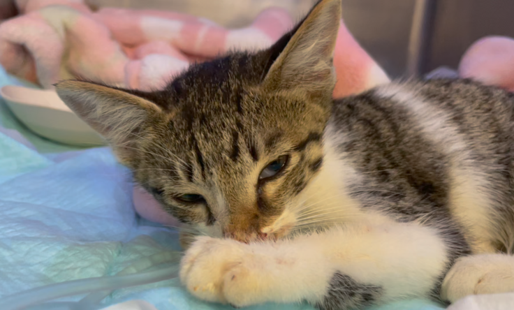 近づいてみると、口が裂け顔面血まみれの状態で動けないままうずくまり、失禁している仔猫に遭遇しました。